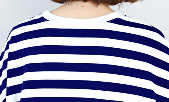 ●大氣的領口設計,凸顯出女人的知性美;簡單一件條紋T